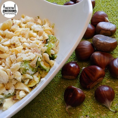 Kuhan kostanj olupimo, nasekljamo na drobno in posujemo čez solato.