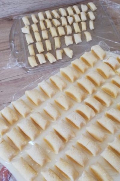 1. Pire krompirju dodamo moko, pšenični zdrob, jajce, sol. Vse skupaj zmešamo v testo