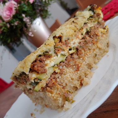 Za kvinojo pripravimo še sirni nadev. 100 g na osebo cottage cheese-a zmešamo s parmezanom in jajcem. Parmezana uporabimo nekje v razmerju 1:5 s sirom (če imamo torej 100 g cottage cheese-a, vzamemo 20 g parmezana in potem uporabimo večkratnik števila oseb, za katere kuhamo). Jajc pa damo toliko, da lepo povežejo naš nadev – eno do tri jajca. Začinimo z origanom in svežo baziliko.